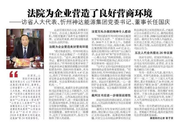 “我切身感受到,忻州中院用公平和正義為企業(yè)撐起了一片蔚藍(lán)色的法治天空。”近日,神達(dá)集團(tuán)黨委書記、董事長任國慶在接受記者專訪時(shí)表示,“忻州中院受理并審結(jié)了多起涉及神達(dá)集團(tuán)資源整合時(shí)的債權(quán)債務(wù)糾紛、股權(quán)糾紛類案件,共為神達(dá)集團(tuán)挽回經(jīng)濟(jì)損失4.47億余元,得到了忻州市委、市政府的充分肯定和企業(yè)的高度評價(jià),實(shí)現(xiàn)了法律效果、社會(huì)效果和政治效果的有機(jī)統(tǒng)一。”