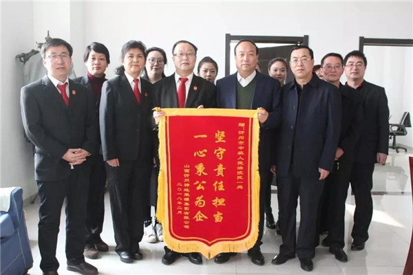 “特別感謝忻州中院對神達(dá)集團(tuán)發(fā)展的無私支持。”任國慶告訴記者,2018年2月28日上午,為感謝忻州中院公正司法、高效辦案,為神達(dá)集團(tuán)挽回經(jīng)濟(jì)損失4.47億余元,他和總經(jīng)理田拴小將寫有“公正踐行者,企業(yè)守護(hù)神”和“堅(jiān)守責(zé)任擔(dān)當(dāng),一心秉公為企”的兩面錦旗,分別送到了忻州中院黨組書記、院長劉碩才和民事審判一庭法官手中。“公平正義的司法環(huán)境是良好營商環(huán)境的必要條件和重要組成。”任國慶介紹,忻州中院依法審結(jié)了神達(dá)集團(tuán)公司資源整合的歷史遺留問題等一大批案件,成功為企業(yè)挽回經(jīng)濟(jì)損失。而法官們拒絕吃請,一心一意保護(hù)企業(yè)發(fā)展,這樣的法院、法官著實(shí)令他感動(dòng),也讓他感到很欣慰、很欽佩。